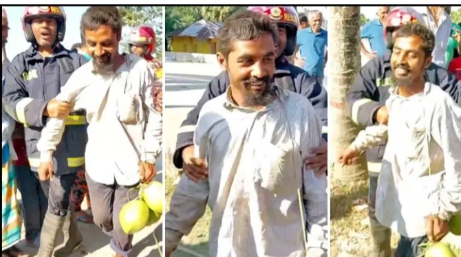 ডাব খেয়ে গাছের চূড়ায় যুবকের ঘুম, উদ্ধার করলো ফায়ার সার্ভিস ফায়ার সার্ভিস ডেকে ওই যুববকে নিচে নামানো হয়