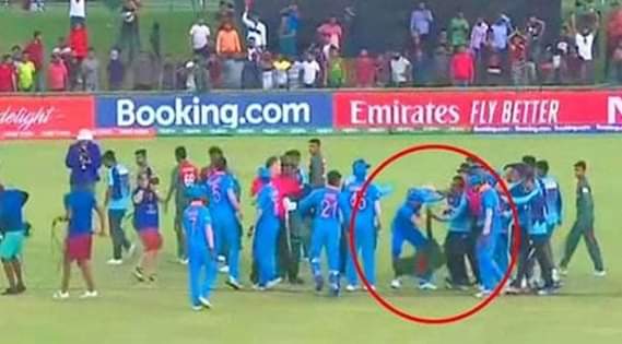 ম্যাচের একদম প্রথম ওভার থেকেই দেখা গেছে উত্তেজনা। অসাধারণ এক ডেলিভারিতে ফর্মে থাকা যশস্বি জাসওয়ালকে পরাস্ত করে হুঙ্কার ছেড়েছিলেন শরীফুল ইসলাম। পরের ওভারে রীতিমতো বাগযুদ্ধেই মত্ত হয়েছিলেন দিব্বংশ সাক্সেনা ও তানজিম হাসান সাকিব। আম্পায়ারের মধ্যস্থতায় থামে সেই ঘটনা। কিন্তু খেলা শেষে দু’দলের খেলোয়াড়রা বিবাদে জড়িয়ে পড়েন। যা নালিশ হিসেবে আইসিসিকে জানায় ভারত।