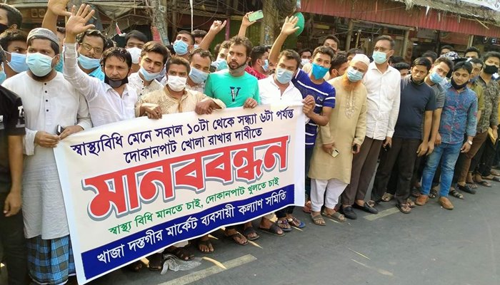দোকানপাট খুলে দিতে ব্যবসায়ীদের বিক্ষোভ