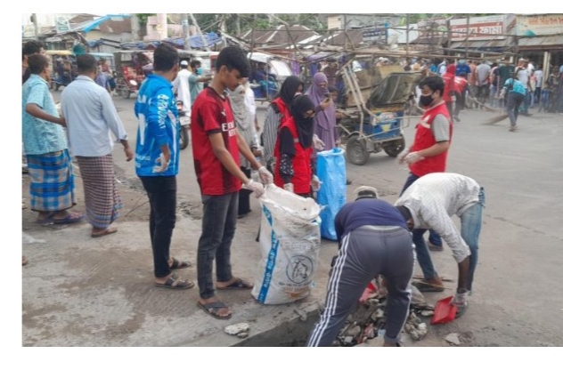 এসময় দেখা গেছে শিক্ষার্থীরা তাদের মুখে মাক্স পড়ে, হাতে বস্তা, ঝাড়ু ও বেলচা নিয়ে পরিষ্কার-পরিচ্ছন্ন কাজে মেনে পড়ে।