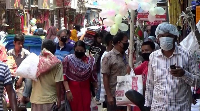 করোনা ভাইরাসের ভয়াল থাবা থেকে মানুষকে রক্ষার জন্য সরকার নিত্যপ্রয়োজনী পণ্যের দোকান ও ঔষধের দোকান ব্যতীত সকল ব্যবসায় প্রতিষ্ঠান বন্ধ ঘোষনা করে। কিন্ত দীর্ঘ প্রায় ২ মাস পর সরকারের নির্দেশে রোববার সকাল থেকে বিপনী বিতান গুলো খুলে সামাজিক দুরত্ব বজায় রেখে বেচা কেনা করার কথা থাকলেও তা মানছে না কেউ। ক্রেতা কিংবা বিক্রেতাদের হাতে গ্লাবস নেই। নেই মুখে মাস্ক। বিপনীবিতানগুলোতে সামাজিক দুরত্ব বজায় রাখার বালাই নেই। দীর্ঘ্যদিন বন্ধের পর মনে হচ্ছে তারা মোক্ষম সময় পেয়ে গেছে। হুড়োহুড়ী, ঠেলাঠেলি আর গাদাগাদি করে চলাচল করছে মানুষ। সরকারী ও বেসরকারী ব্যাংকেও রয়েছে মানুষের ঢল।