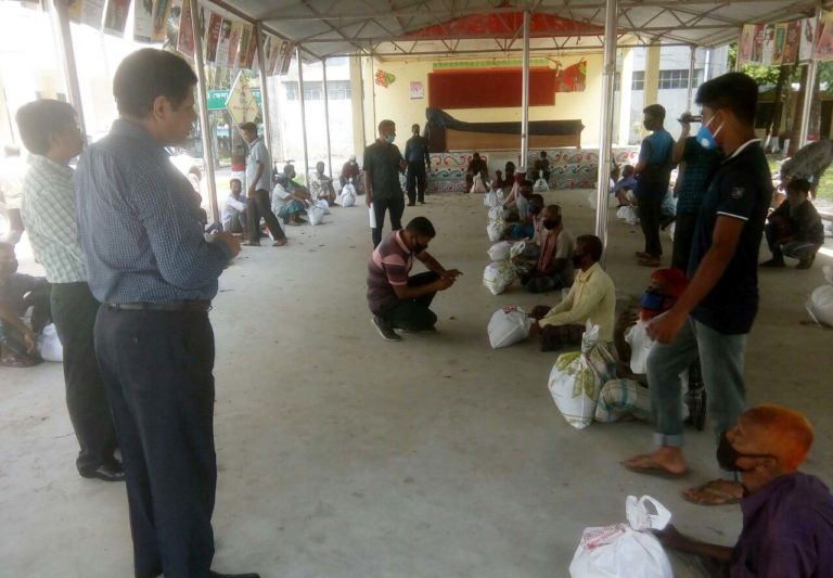 এতে প্রথম পর্যায়ের ৯০জন চালককে বস্তা হারে ১০ কেজি চাল, ১লিটার তেল, ১ কেজি আলু ও ১ কেজি ডাল বিতরণ করা হয়।