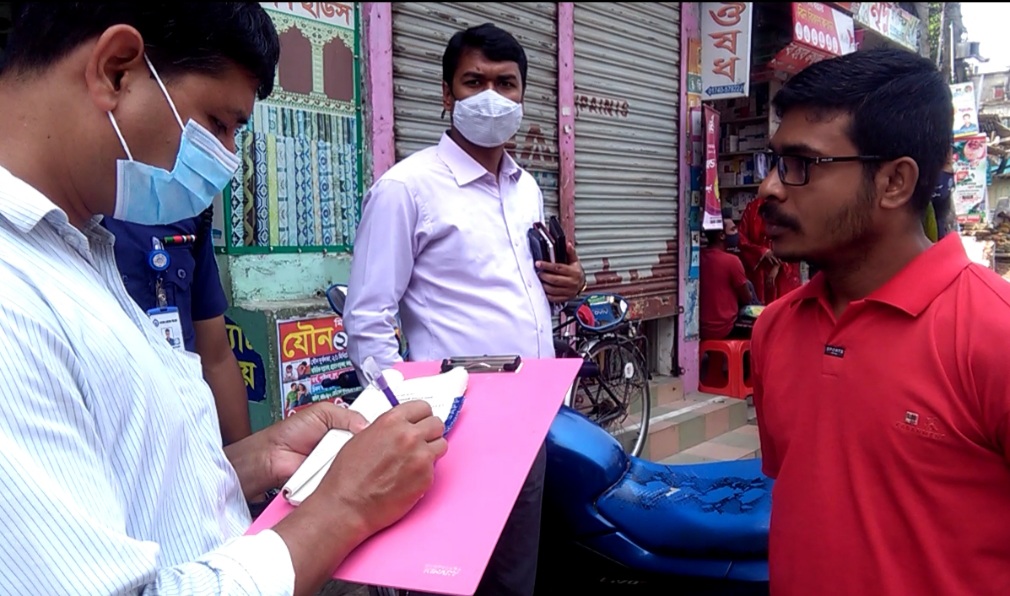কোনো কাজ না থাকা সত্ত্বেও কিছু মানুষ আছে সরকারি নির্দেশনা অমান্য করে রাস্তা বাইরে বের হচ্ছেন লকডাউন দেখতে। সেইসব মানুষের মুখে ছিলো না মাক্স ঠিক তখনি গণতে হচ্ছে জরিমানা।