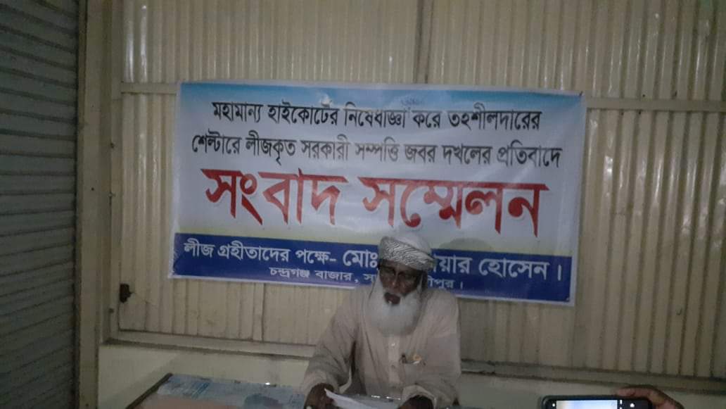 ভবনের মূল ফটক ভেঙে দোকান নির্মাণ চন্দ্রগঞ্জ জিম্মি ৩০ পরিবারের সাংবাদিক সম্মেলন